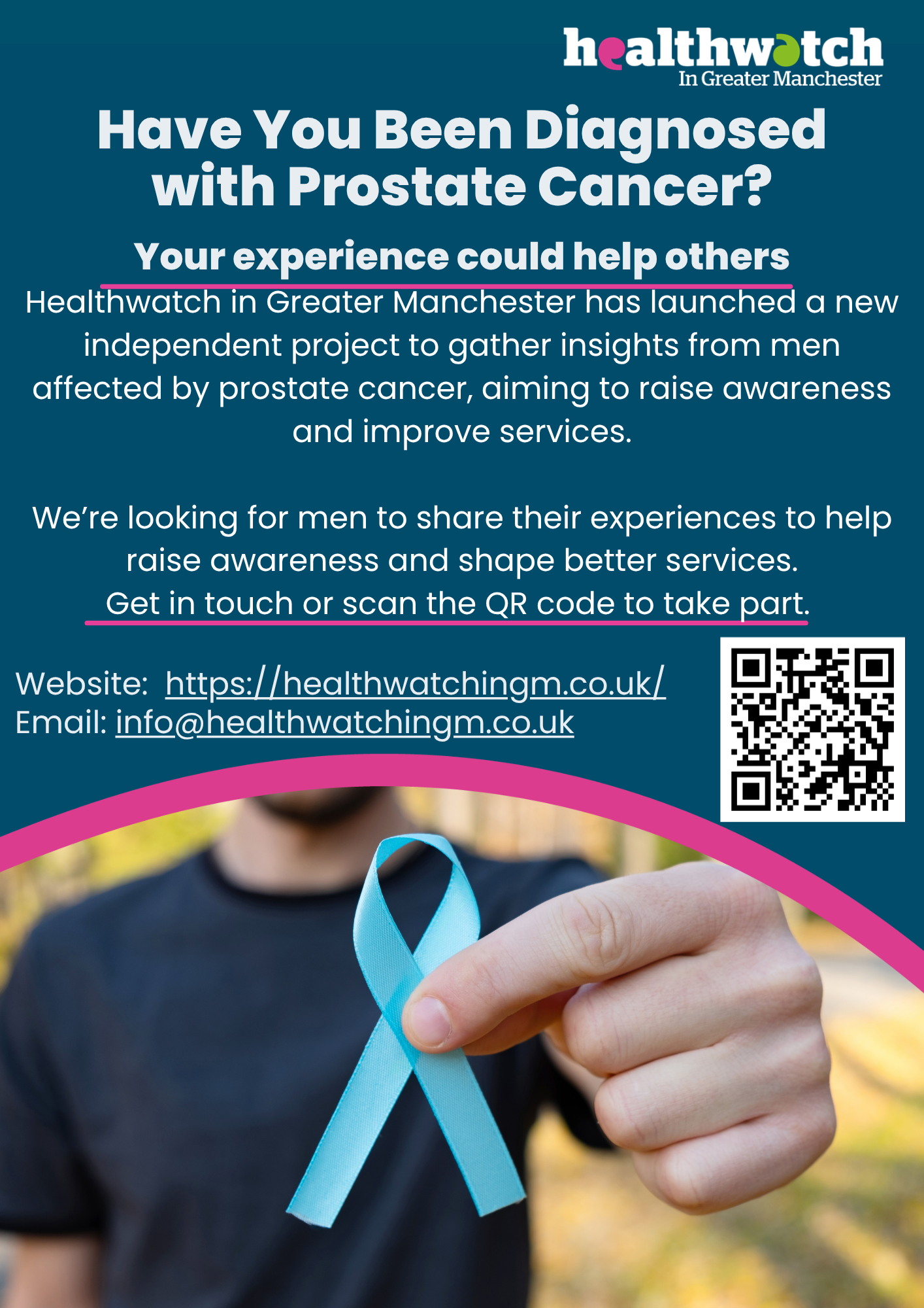 Healthwatch in Greater Manchester have launched an important new project lead by Healthwatch Bury to improve support for men living with or affected by prostate cancer.