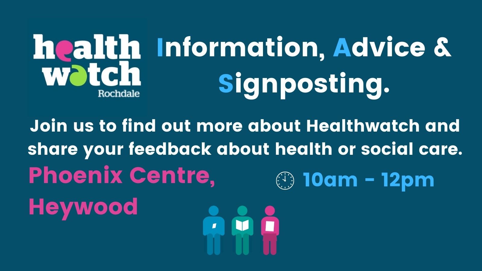 If you can’t attend an Information, Advice and Signposting Surgery you can contact us on 01706 249 575 or email us at info@healthwatchrochdale.org.uk and a member of the team will be able to assist you further.